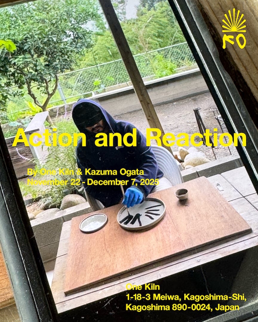 2025年の ash では、緒方数馬が ひとりのアーティストとして自身の名義で参加する。 出会いから積み重ねてきた 「Action(行為)」と「Reaction(反応)」が、 今回の展示につながっている。 それは計画的に進めてきたことではなく、 お互いの感覚の共有、いわば “バイブスチェック” と、 手と土と火、そして一瞬のひらめきが混ざり合う、予測不能な連鎖そのものだ。 偶然が形を創り、 凝り固まった価値観がそっと揺さぶられる。 そのプロセス自体が、 K.O.(Kazuma Ogata)と O.K.(ONE KILN)の 次の火種となる。