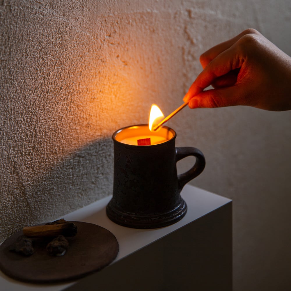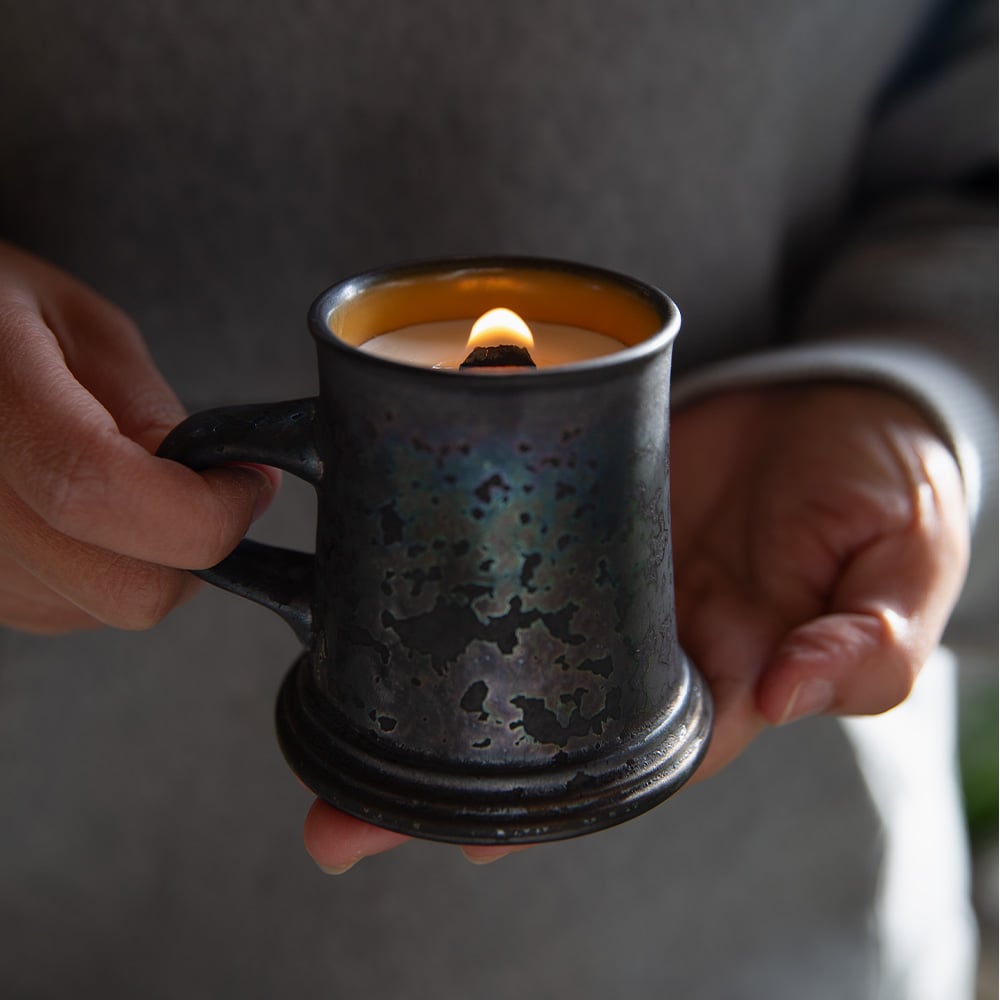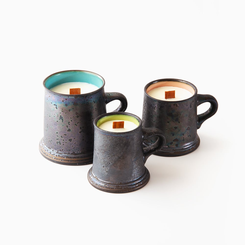 その一言で、器の“余白”が灯りによって包まれ、新しい価値へと生まれ変わるイメージが一気に開きました。 歪みやムラさえも味わいとして引き受ける、特別なアロマキャンドル。 今回は、カップサイズをお選びいただき、2種の香りで数量限定のご用意です。