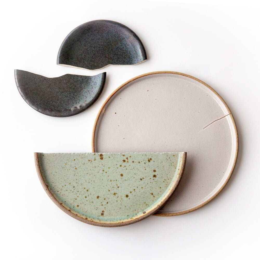以前にもお話ししましたが、陶芸は、窯から作品を取り出すまで何が起こるか予測できません。季節によって異なる乾燥時間、釉薬の厚み、そして土の約10%の収縮率が相互に作用し、意図したものとは異なる結果が生じることがあります。「ONE KILN Reproduction」は、制作途中で割れてしまい、使用されることなく残された器たちを再び輝かせるプロジェクトです。この試みは2023年の年末、ash Design & Craft Fairの繁忙期に静かに幕を開けました。その時期に、私たちの取り組みを象徴していると感じた、ある夢の話をInstagramに投稿しました。当時の臨場感をそのままに、投稿内容をご紹介します。